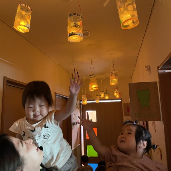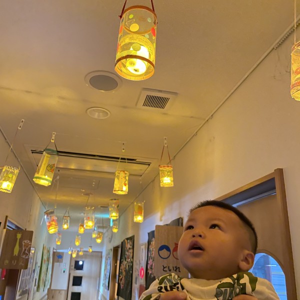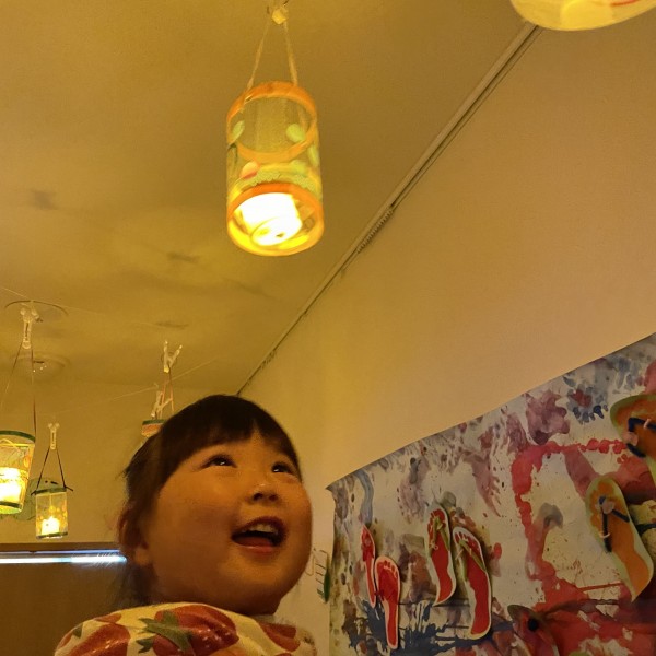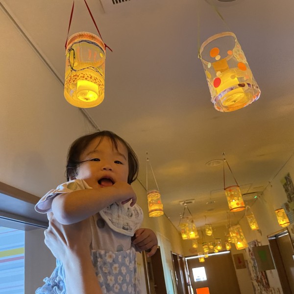 自分の作ったランタンを見つけて嬉しそうに教えてくれたり、お友だちのランタンを見て「きれいだね」と会話したりしていました。