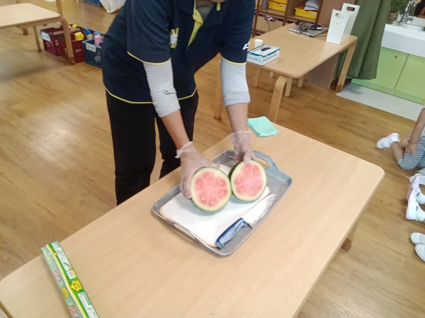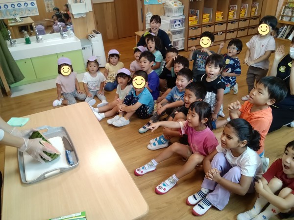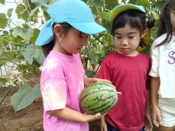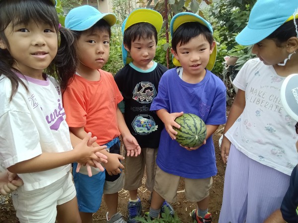 保育園にスイカを持って帰りました。