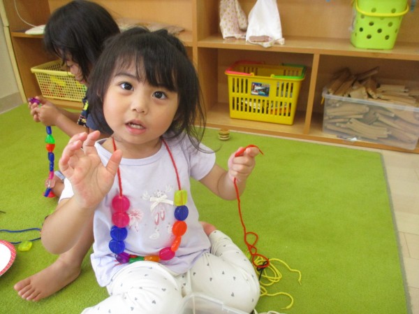こどもの家・志木中宗岡 らっこ組(2歳児)紐通し遊び★