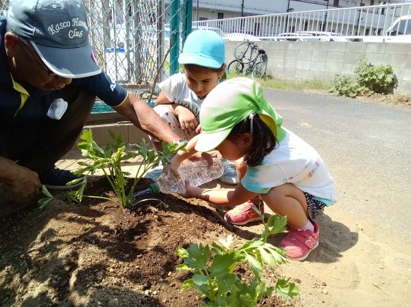 ブロッコリーとセロリの苗を植えました。