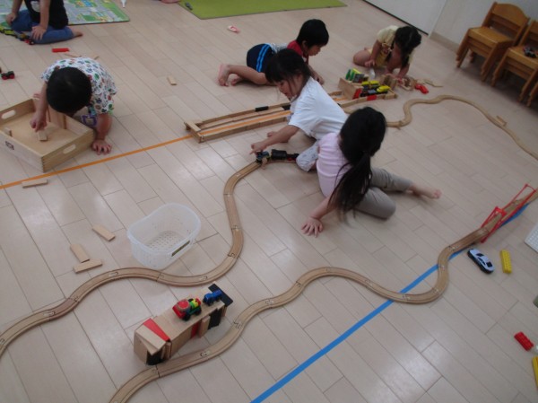 こどもの家・志木中宗岡 ぺんぎん組(3歳児クラス)電車ごっこ