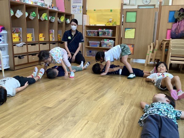 こんな運動遊びもしてみました。両手足を大きく動かします。