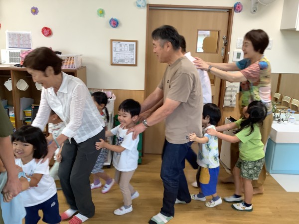 最初は少し緊張気味のこどもたち。じっとおじいちゃん・おばあちゃんの方を見つめていましたが、次第に雰囲気にも慣れ、楽しそうに過ごしていました。