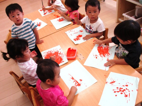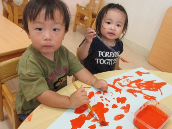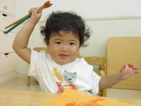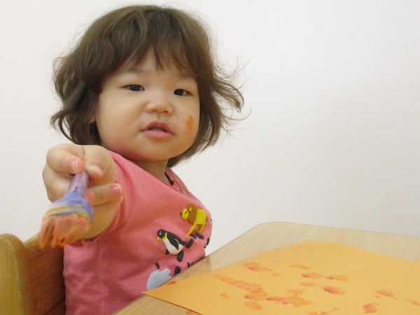 こどもの家・志木中宗岡 敬老のプレゼント製作!あひる組(1歳児)