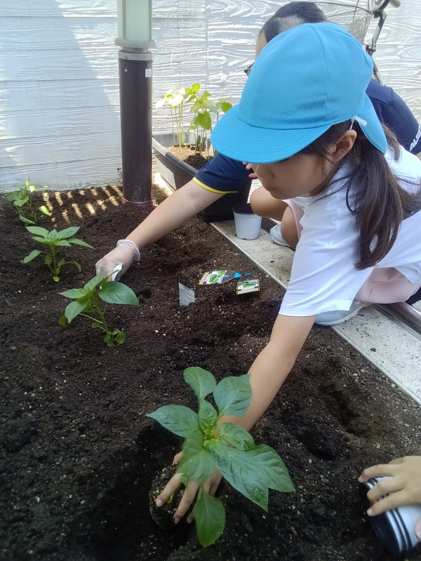 今回は、4月から行っている5歳児ぞう組の食育「野菜栽培・収穫」の様子をお伝え致します。