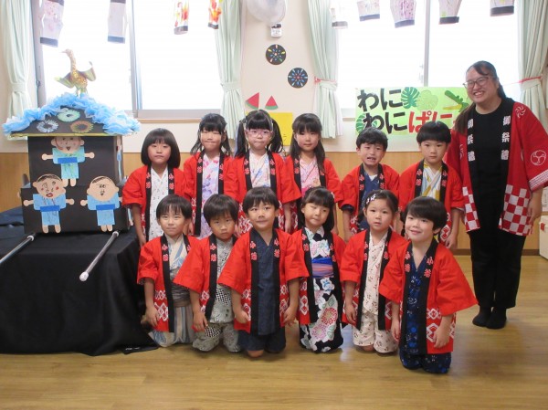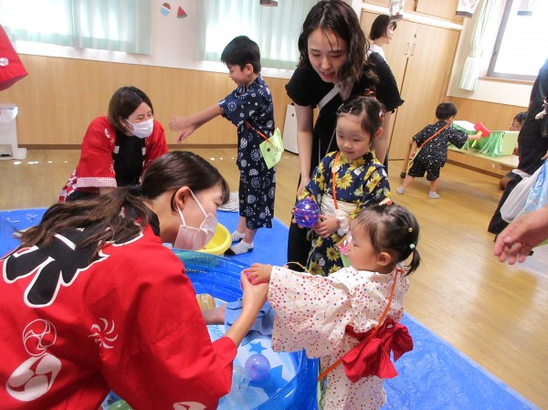 7月の土曜日、今年もお祭りの楽しい雰囲気を保育園でみんなと一緒に楽しむことができました!(^^)!