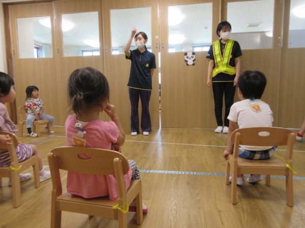 プールに入る前にしないといけない事は何かな?黄色のベストを着ている先生は何をしているのかな?プールに入っている時に気をつけることは何かな?....などなど。プール遊びは子どもたちに人気で大好きな遊びである一方、危険も伴うので事前に約束ごと等をしっかりと伝えています。