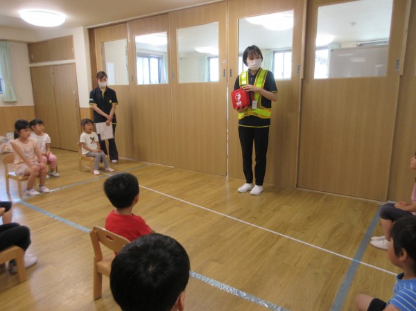 プール開きを前に、職員で力を合わせて屋上にプール設置をしました。また、緊急時に備えて研修も行い、プール遊びの準備は万全!