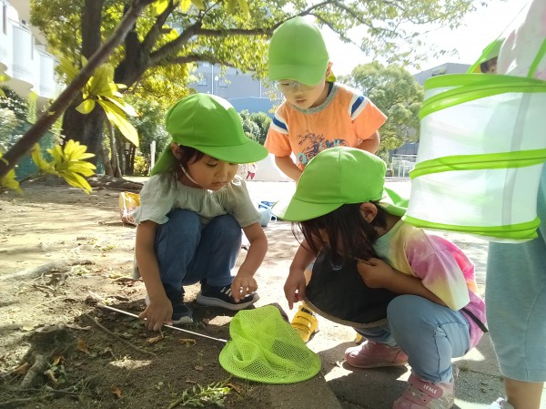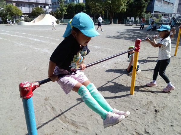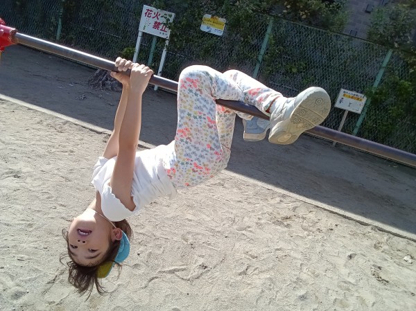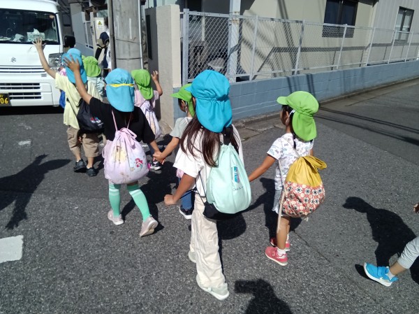 畑でのお仕事が終わり、公園へ行きました。公園では、網を持ってちょうちょを追いかけたり、鉄棒で新しい技に挑戦したり、鬼ごっこをしたり、遊具で遊びました。帰りは暑さで少しパワーダウンしていましたが、横断歩道では腕をピンッとあげて道路を渡ることができました!