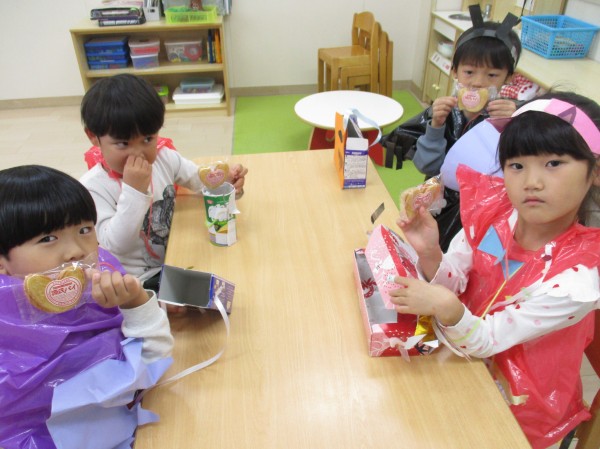 クラスに戻ってからそのお菓子をみんなで食べて、ニコニコ笑顔のいるか組とくじら組でした。