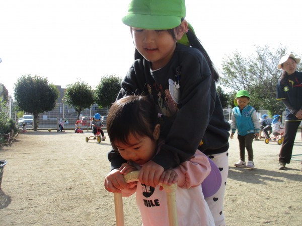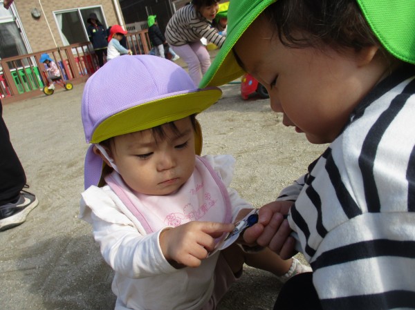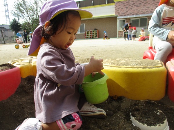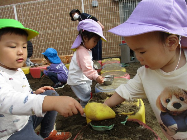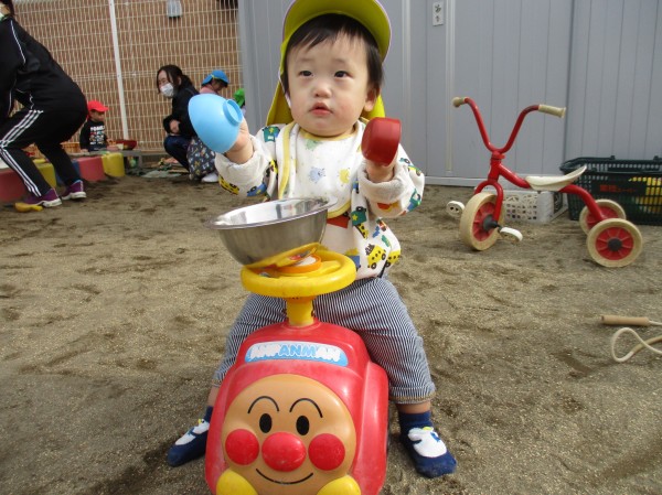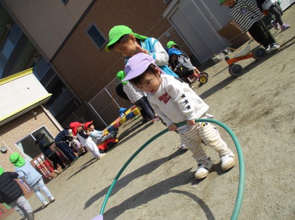 今回は園庭遊びを楽しんでいるたまご組の様子をお届けします(^^)
