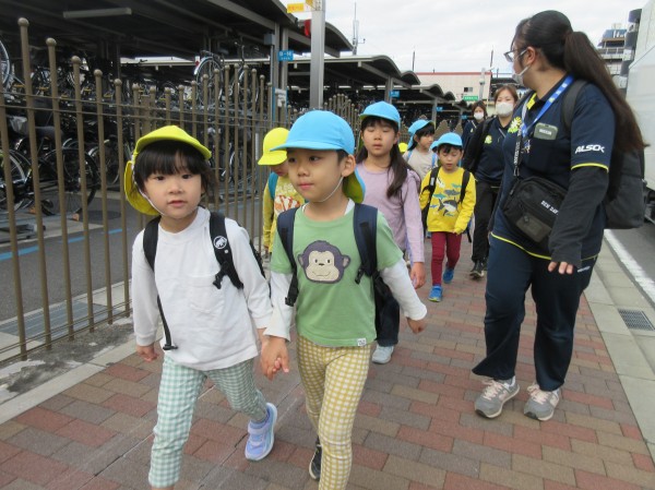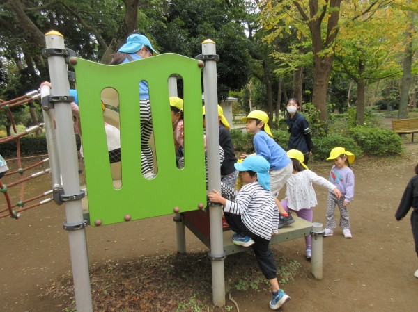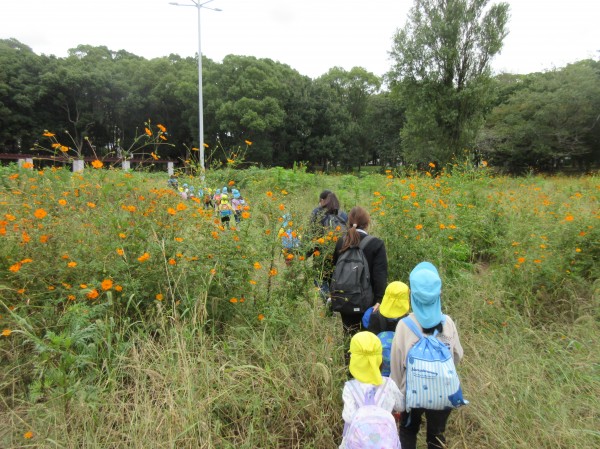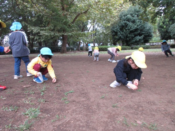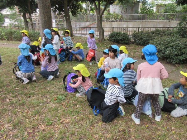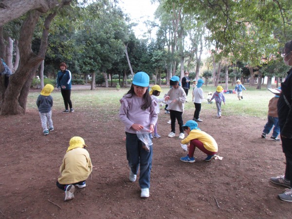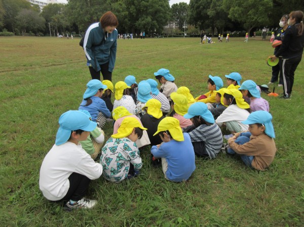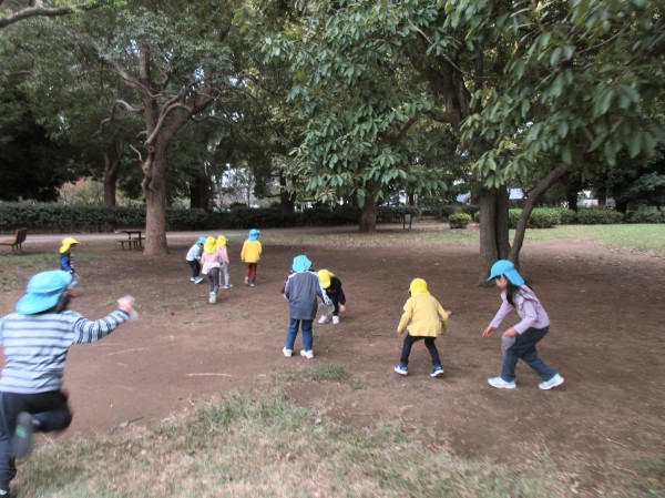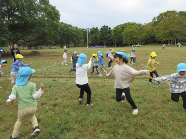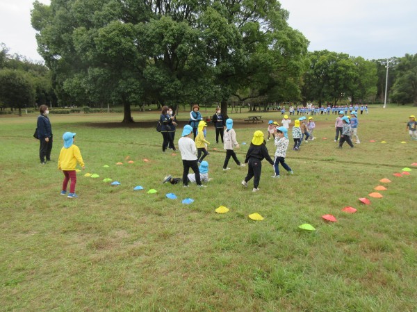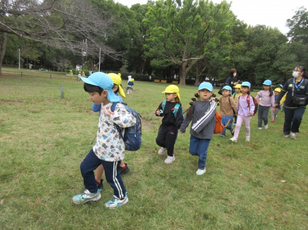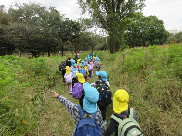10月、片道約50分程歩いて、4歳児きりん組と5歳児ぞう組の子ども達が「行田公園」へ行ってきました。