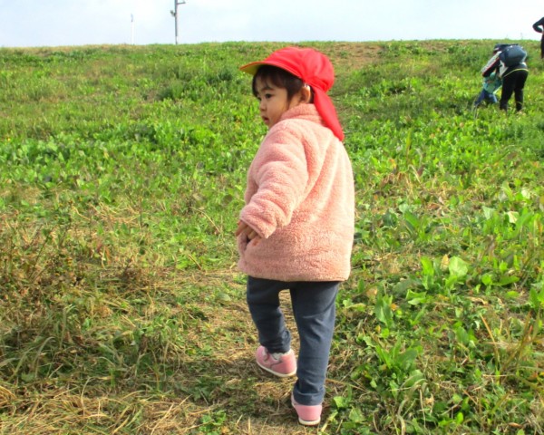こどもの家・志木中宗岡 初めての土手さんぽ☆あひる組(1歳児)