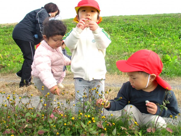 砂利道を走ったり、みんなでお花をみつけたり、たっぷり遊びました!