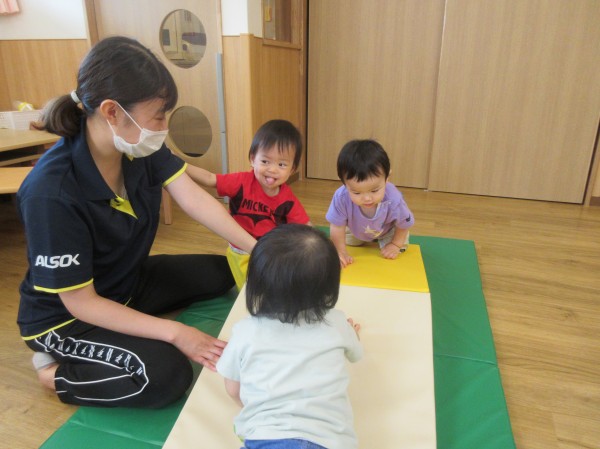 今回は0歳児ひよこ組の室内遊びの様子をご紹介します!