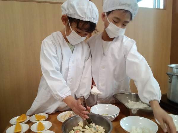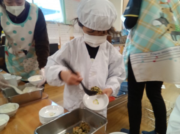 給食では、ほとんどの子がおかわりをして満足そうでした!