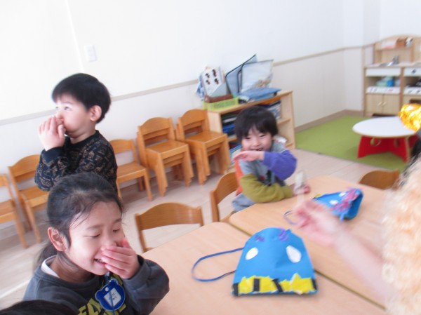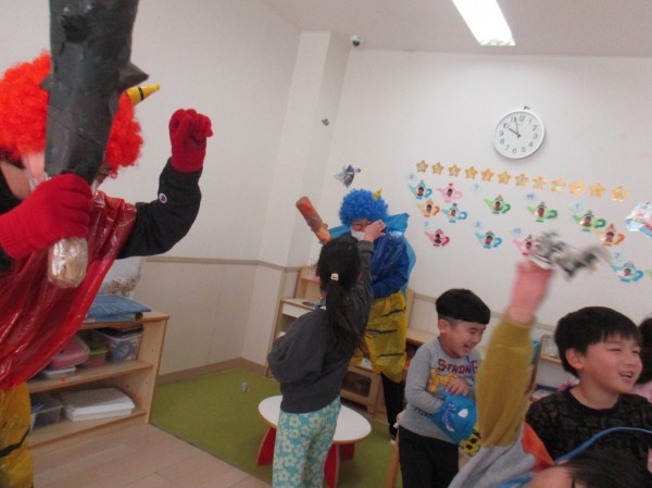 今年は感染症対策で鬼さんたちが各クラスを回ります。