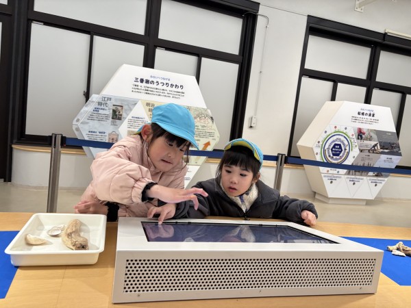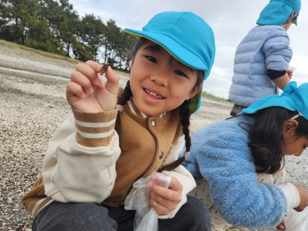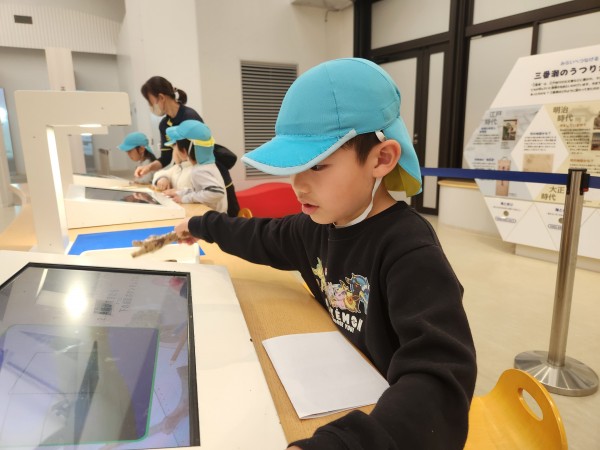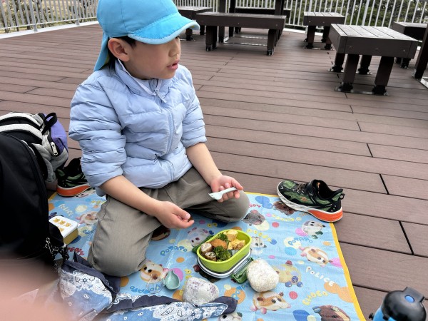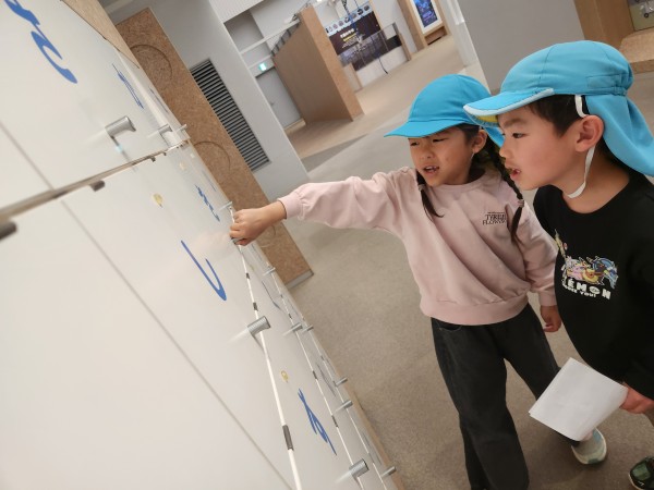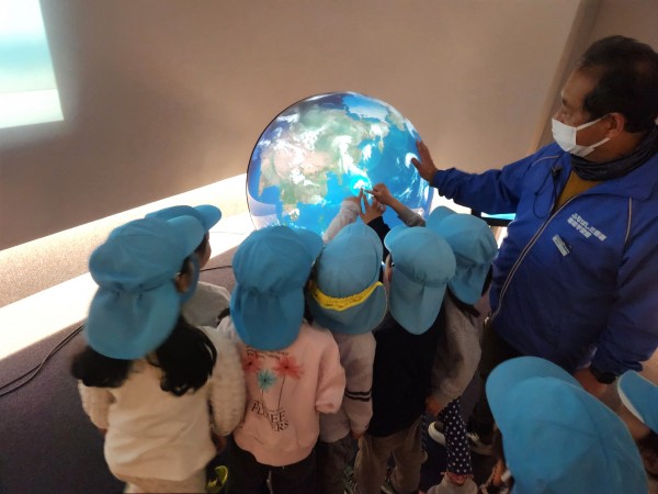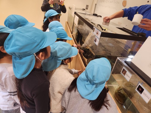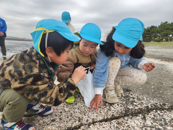 今日は、待ちに待ったお別れ遠足。昨日作った”てるてる坊主”のおかげで雨に降られずに出発することができました。今まで何度もみんなで電車で出掛けていたので、改札を通ることもスムーズでした。公園では、海岸散策をしました。色々な色、形の貝殻を見つけては、職員の方に「これはな~に?」と聞いていました。また学習館では、魚の餌やりを観察したり、水槽の生き物を観察しました。”ハコフグ”やアカエイ””アカクラゲ”などの名前をしっかり覚えていました。そして館内の体験型ゲームを色々と楽しみました。「おもしろ~い!」「またやりたい!「でも、早くお弁当食べたい!」様々な気持ちが入り交ざっている様子のこどもたちでしたが、お弁当を食べることを伝えると「やった~!」と大喜び。お家の方の愛情たっぷりのお弁当を美味しそうに食べていたこどもたちでした。