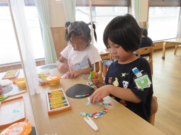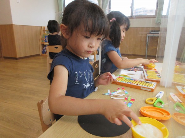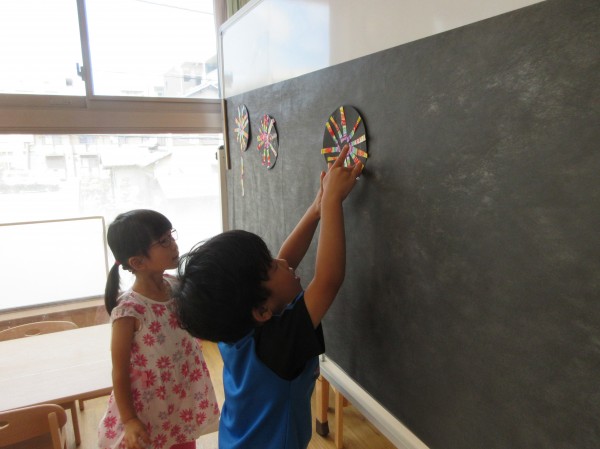 幼児組で夏の壁面作りを行いました。今回は、4・5歳児の花火製作の様子をご紹介します。