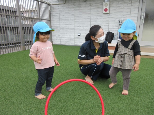 今回は1歳児りす組の戸外遊びの様子をお伝え致します。