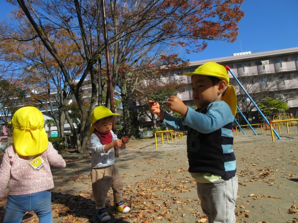 散歩先の公園でも探索をしたり、落ち葉等の自然を見つけたりと存分に体を動かして楽しんでいます。