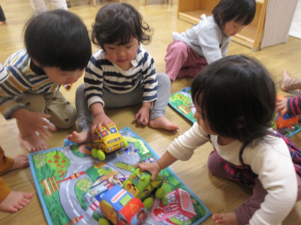 友達と同じ遊びに興味を持ち、平行遊びが楽しめるようになってきました。