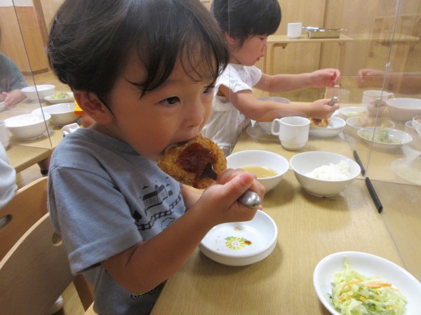 今回は3,4,5歳児幼児組のコロッケ作りや提供時の様子をお伝え致します。