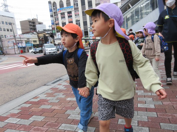 旬菜園に行くまでの道のり「大きなお芋掘れるかな?」「沢山掘るぞ~」と期待に胸を膨らませる子ども達。