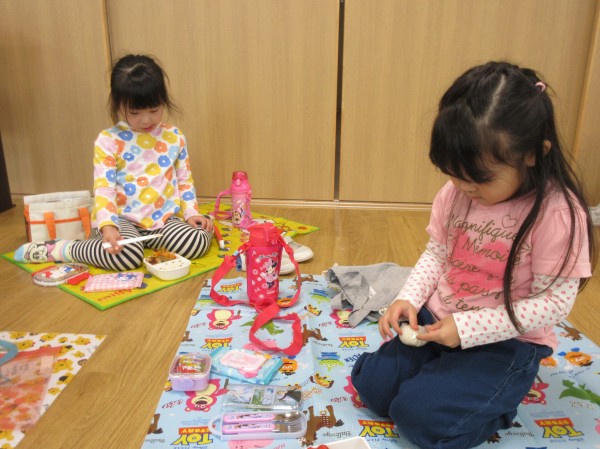 沢山収穫した後は、保育園に戻ってお弁当タイムです。