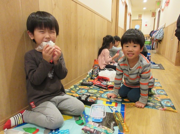 昼食は保育園に戻って保護者の方の手作りお弁当を食べて、幸せいっぱいな子ども達でした!