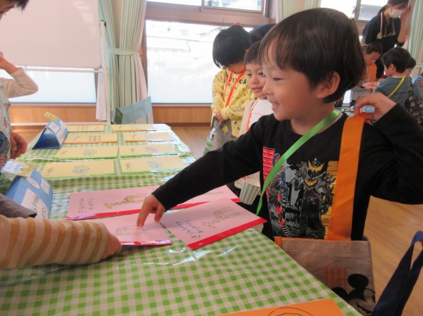 2歳児は5歳児にサポートしてもらいながら、お買い物を楽しんでいました。