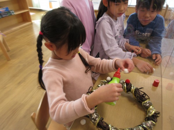 今回は、5歳児ぞう組のリース作りの様子をお伝え致します。