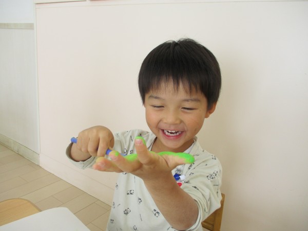 ハサミに挑戦したり、絵の具遊びを楽しんだりしながら、秋の製作を楽しんだ子どもたちでした!