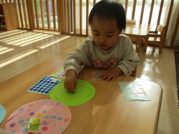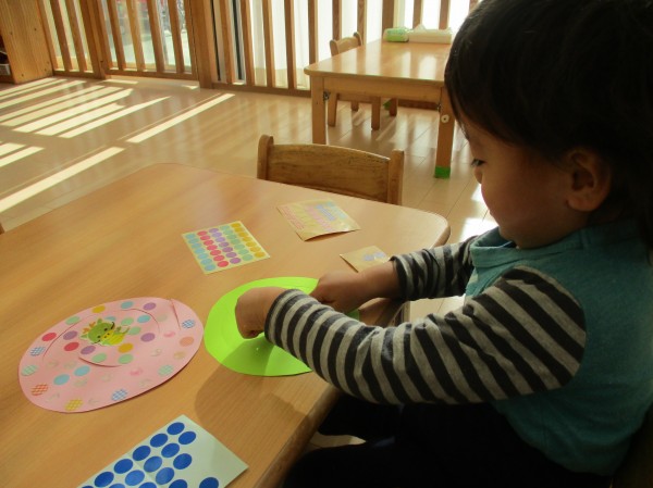 シール貼り、集中して取り組んでいました。みんな真剣です。
