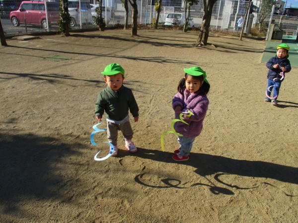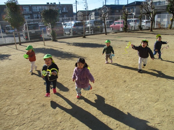 こどもの家・志木中宗岡 お正月遊び 凧揚げ あひる組(1歳児クラス)