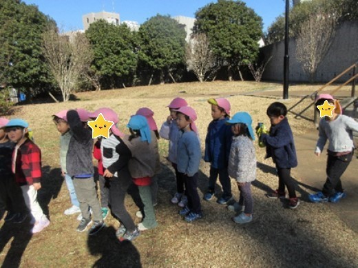 今日はぱんだ、きりん組で西船4丁目緑地へ散歩に行きました。