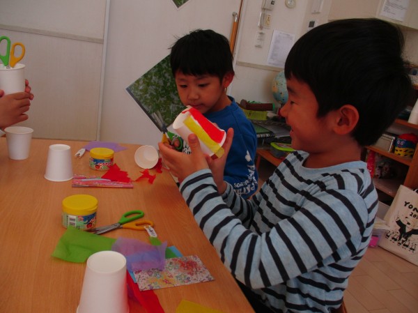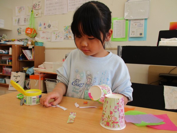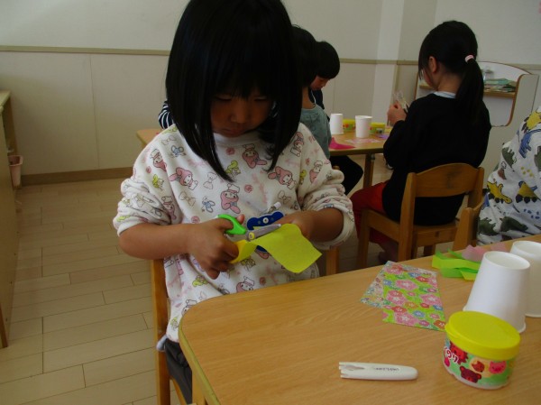 花紙をハサミで切るのに苦戦しながらも集中して取り組んでいました!!