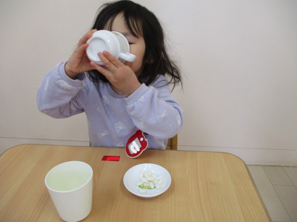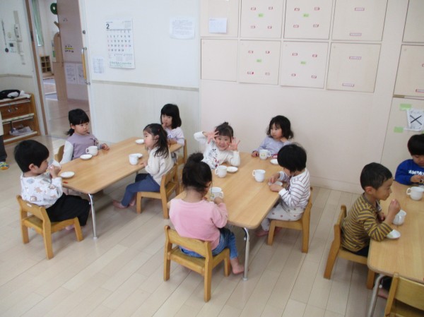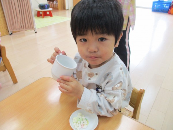 「わーひなあられだ!」「ひなあられあまーい(*'▽')」「ピンクの可愛い♡」と嬉しそうに食べていた子どもたちでした!