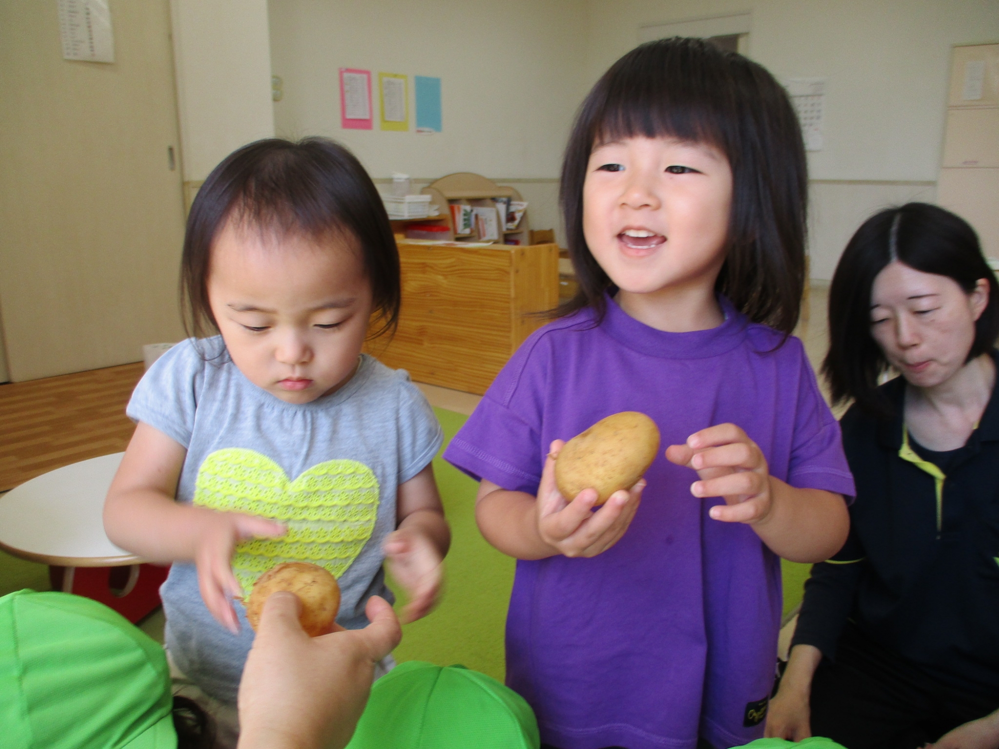 こどもの家・志木中宗岡 らっこ組のほうれん草ちぎり(2歳児クラス)