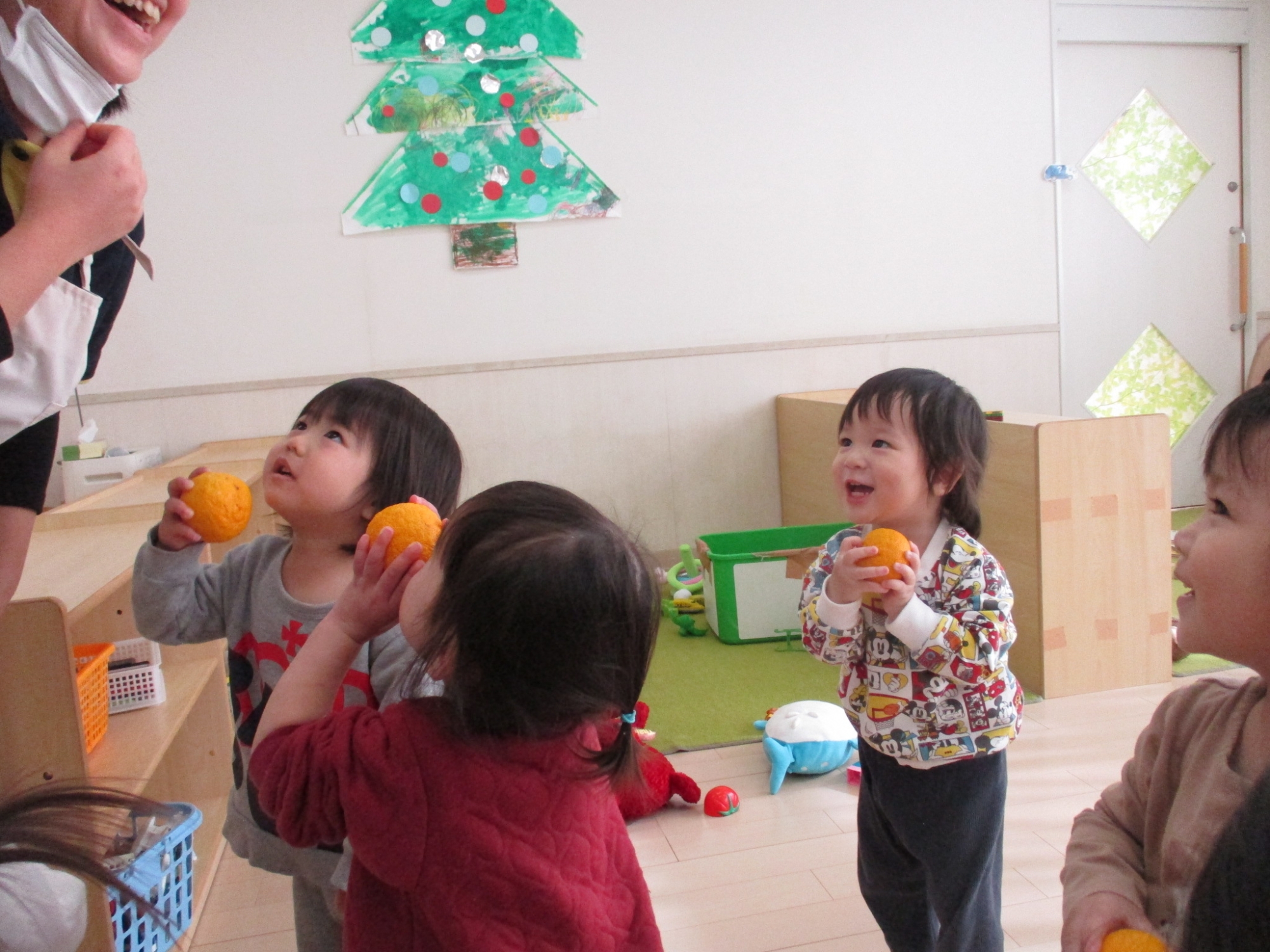 こどもの家・志木中宗岡保育園 あひる組(1歳児クラス)ゆずに触れたよ♡
