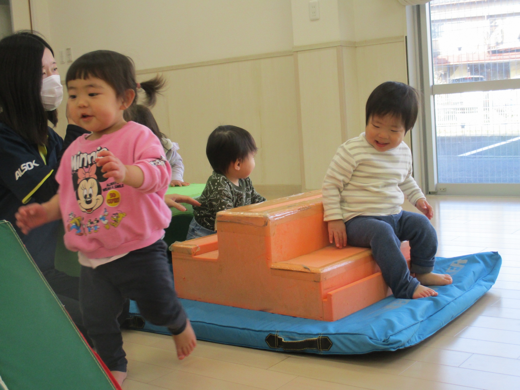 こどもの家 志木中宗岡 ホールで遊ぼ( ^ω^ ) たまご組(0歳児クラス)
