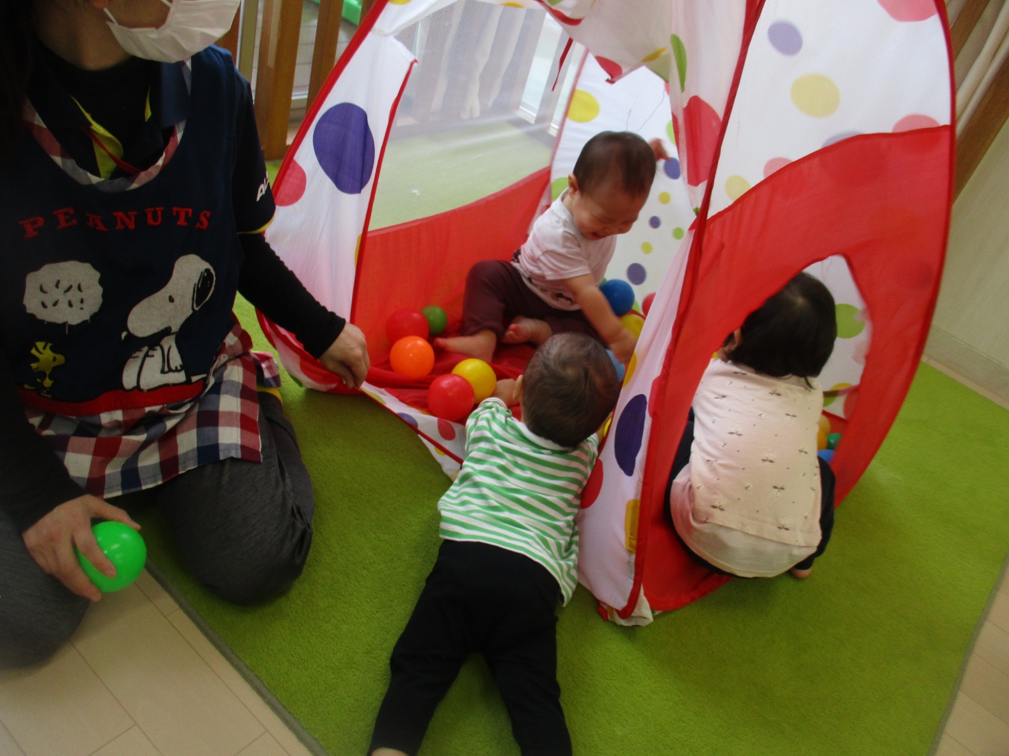 こどもの家・志木中宗岡 たまご組(0歳児クラス)遊ぶの大好き♡