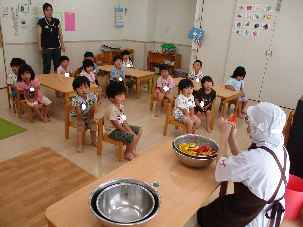 こどもの家・志木中宗岡 ぺんぎん組(3歳児クラス)パプリカの種取りをしたよ!
