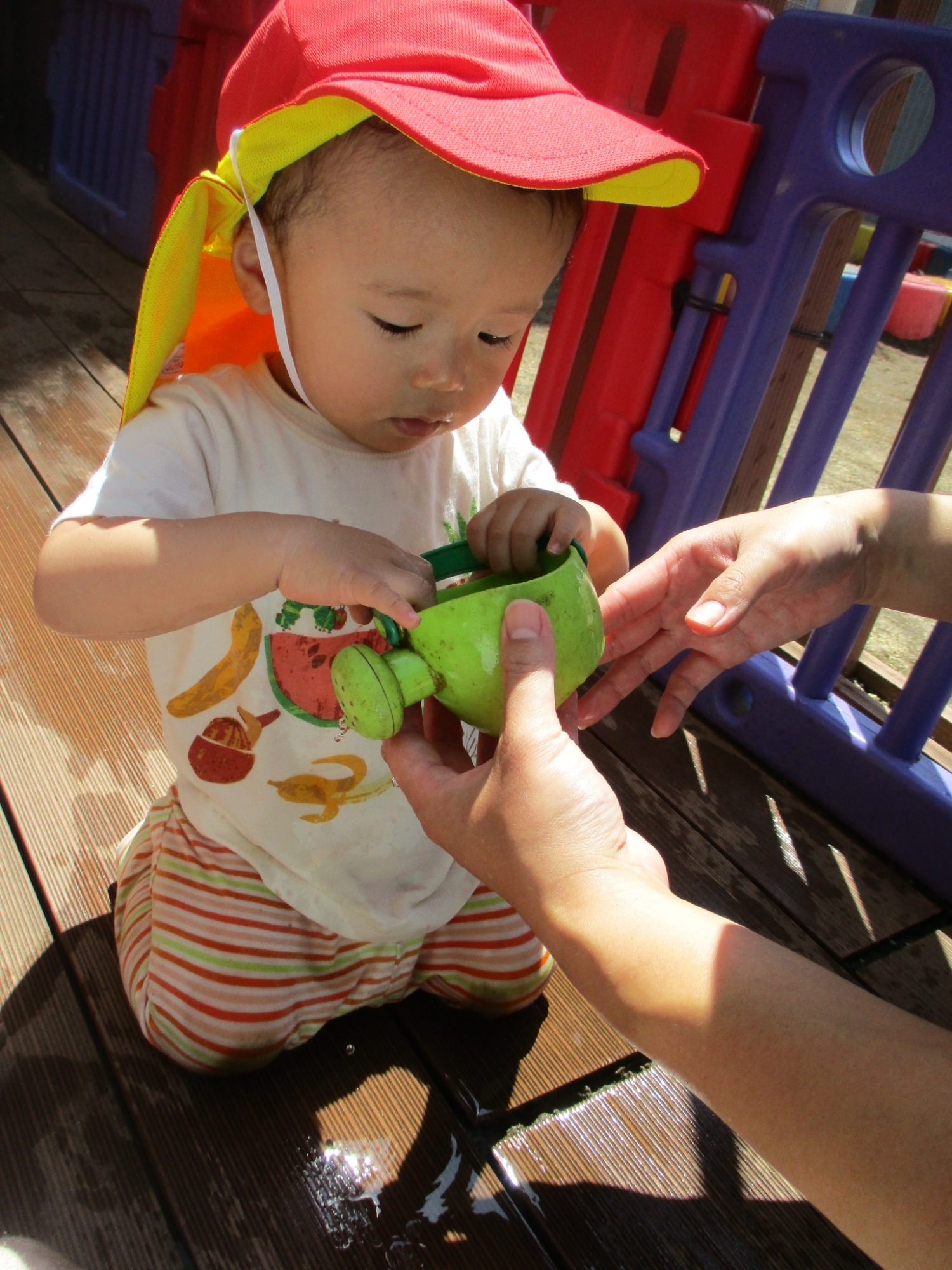 こどもの家・志木中宗岡保育園 お水に触れたよ たまご組(0歳児)