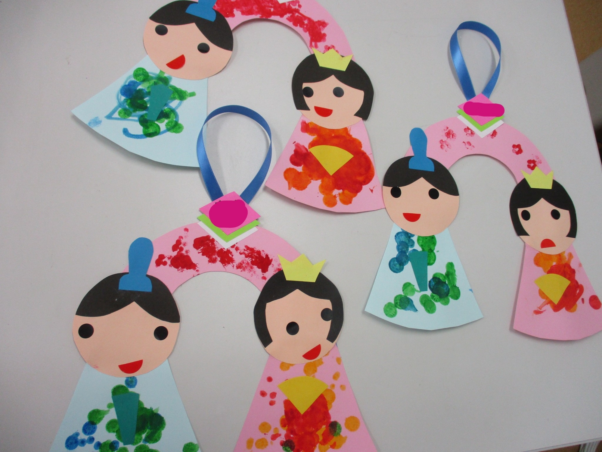 こどもの家・志木中宗岡 タンポでお雛様製作(^^) あひる組(1歳児クラス)
