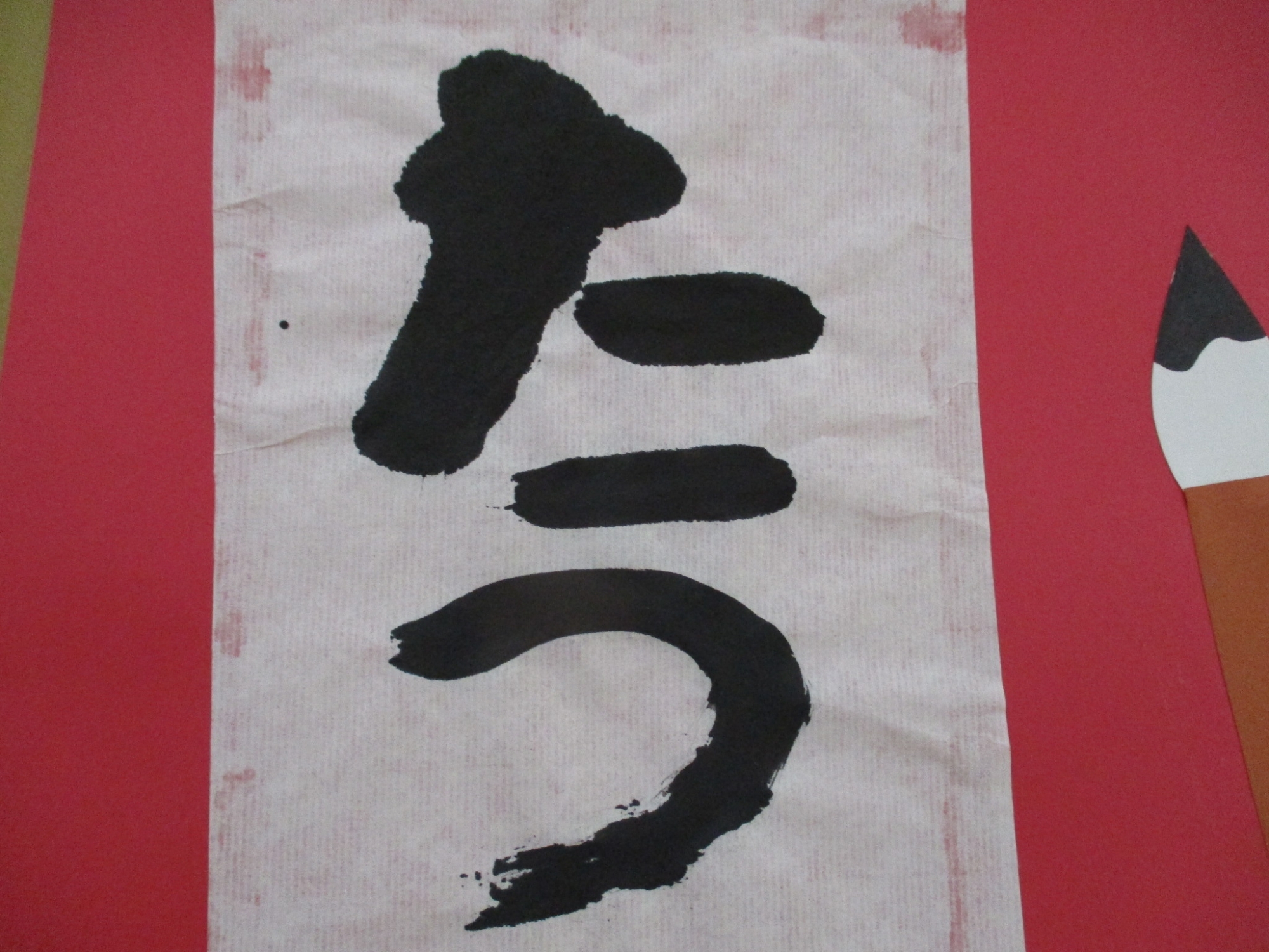 こどもの家・志木中宗岡 書き初めごっこ☆いるか組(4歳児クラス)