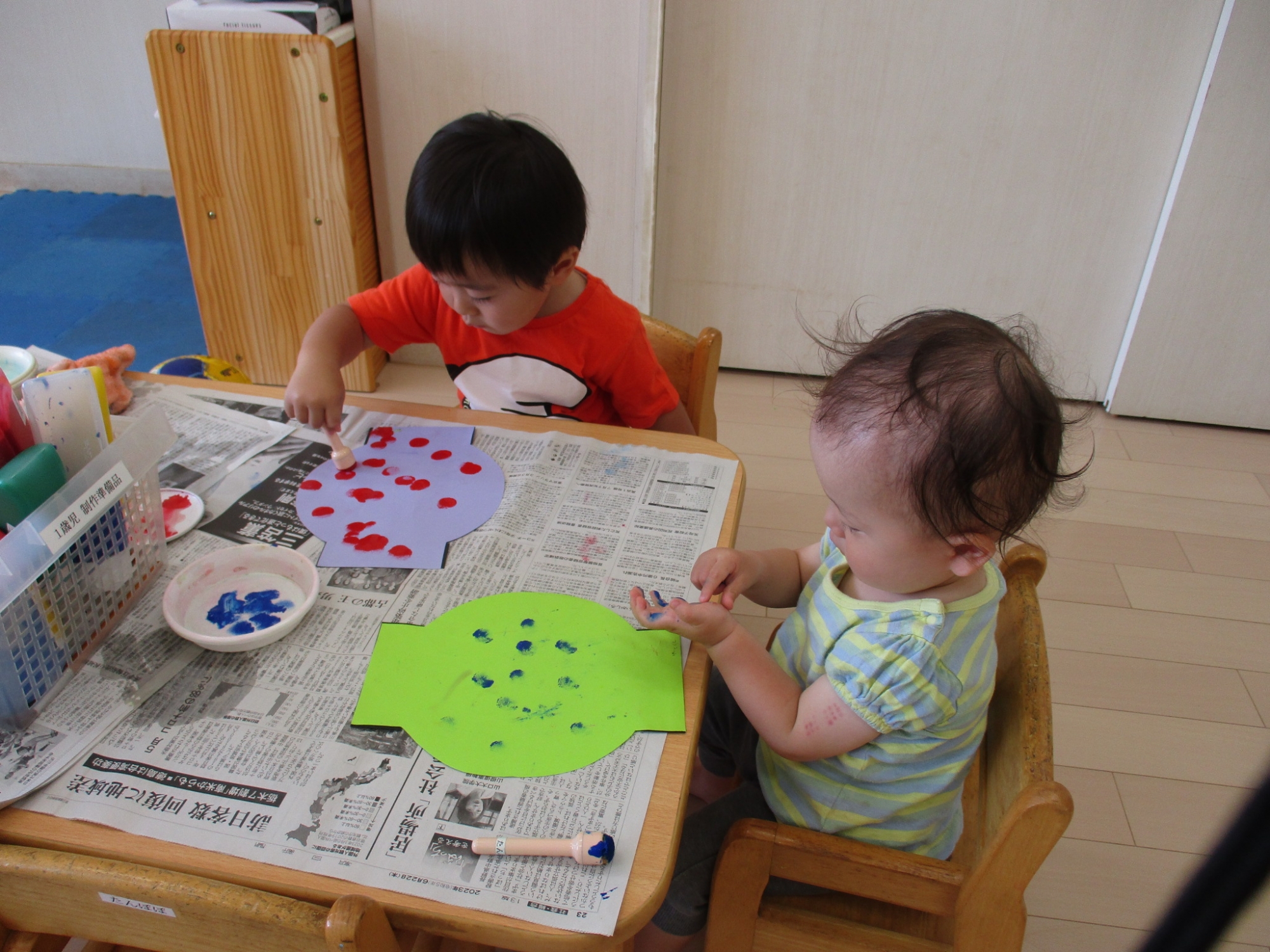 こどもの家・志木中宗岡 組らっこ組(2歳児クラス)絵の具遊び☆