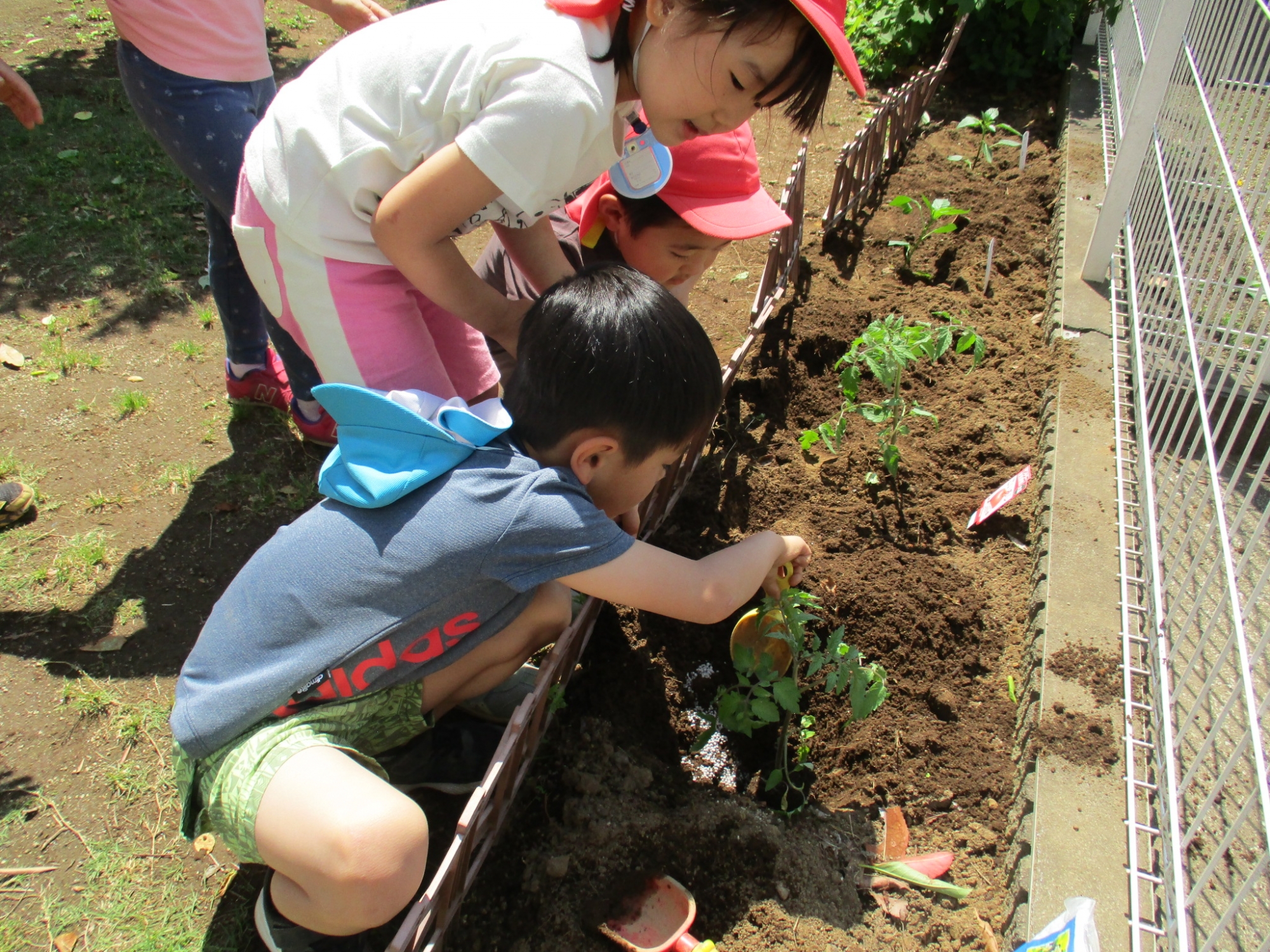 こどもの家保育園・志木中宗岡 野菜の苗植えといちご食べたよ♡ いるか組(4歳児)