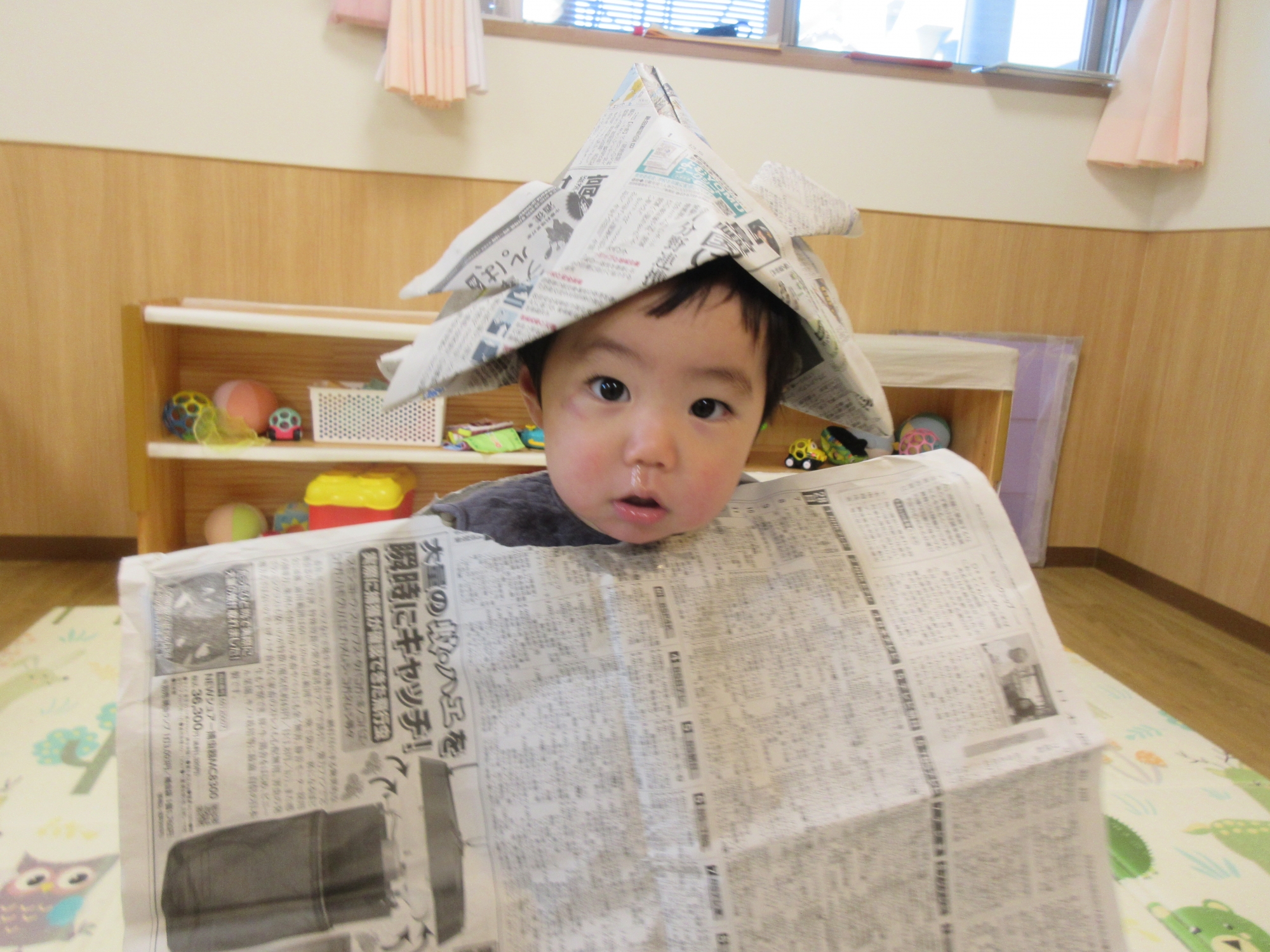 『たんぽぽ西船橋駅前保育園』0歳児ひよこ組 ~新聞紙・シール貼り遊び~