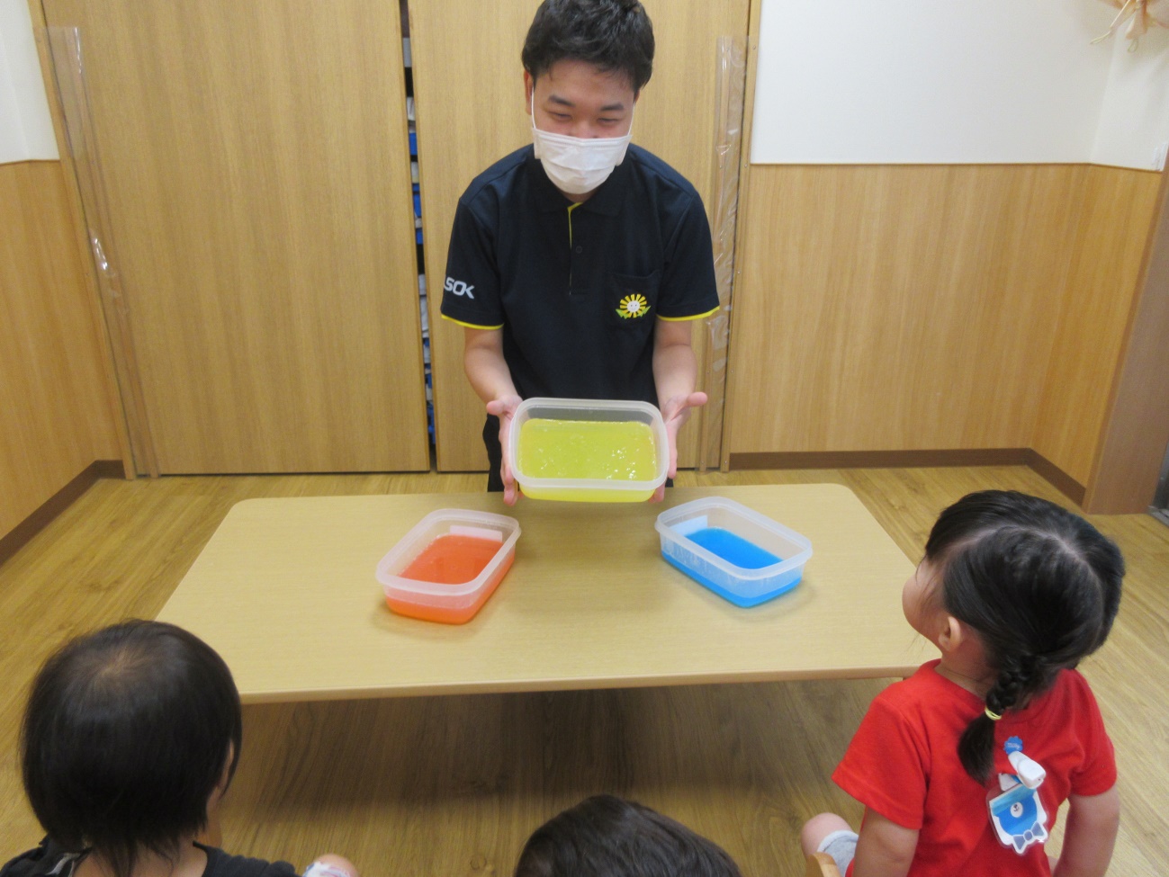 〚たんぽぽ西船橋駅前保育園〛寒天で感触遊びを楽しみました♪